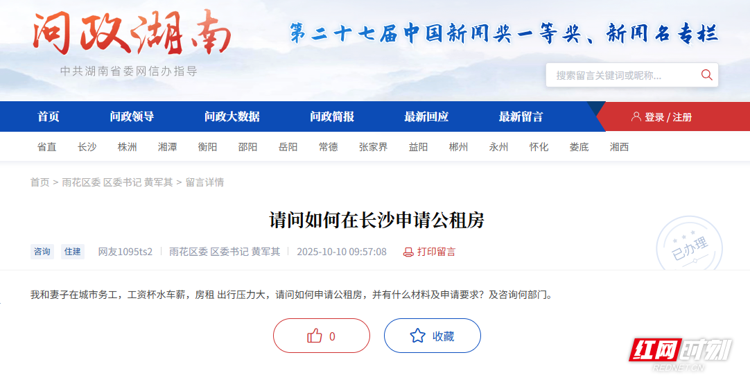 红网时刻新闻10月20日讯(记者 陈星晓)近日,有网友在红网《问政湖南》栏目留言咨询,称与妻子在长沙务工,面临房租及生活压力,希望了解如何申请公租房,以及申报所需材料及受理部门。该问题后续获得长沙市雨花区住房和城乡建设局的详细回应。