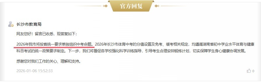 湖南日报1月12日讯(全媒体记者 杨斯涵)日前,湖南省教育考试院印发《湖南省初中学业水平考试试卷结构(2025年修订)》,明确2026年中考将实行四科开卷、题型分值调整等多项改革举措(2026湖南中考试卷安排来了!四科开卷,题型分值有调整),这一方案的发布引发长沙家长的关注:长沙中考是否会启用湖南省卷呢?近日,长沙市教育局回应热点关切:2026年长沙中考将继续保持单独命题模式,试题结构遵循“总体稳定,适当微调”原则。