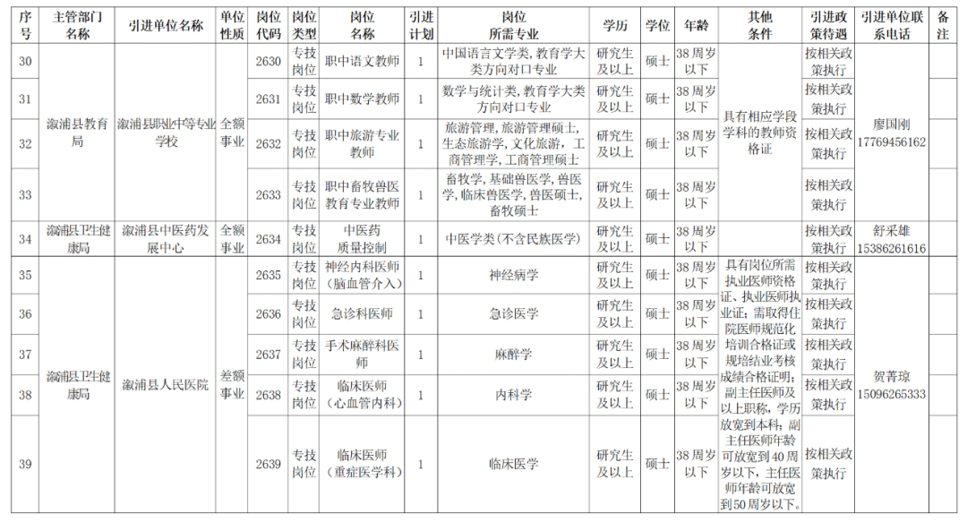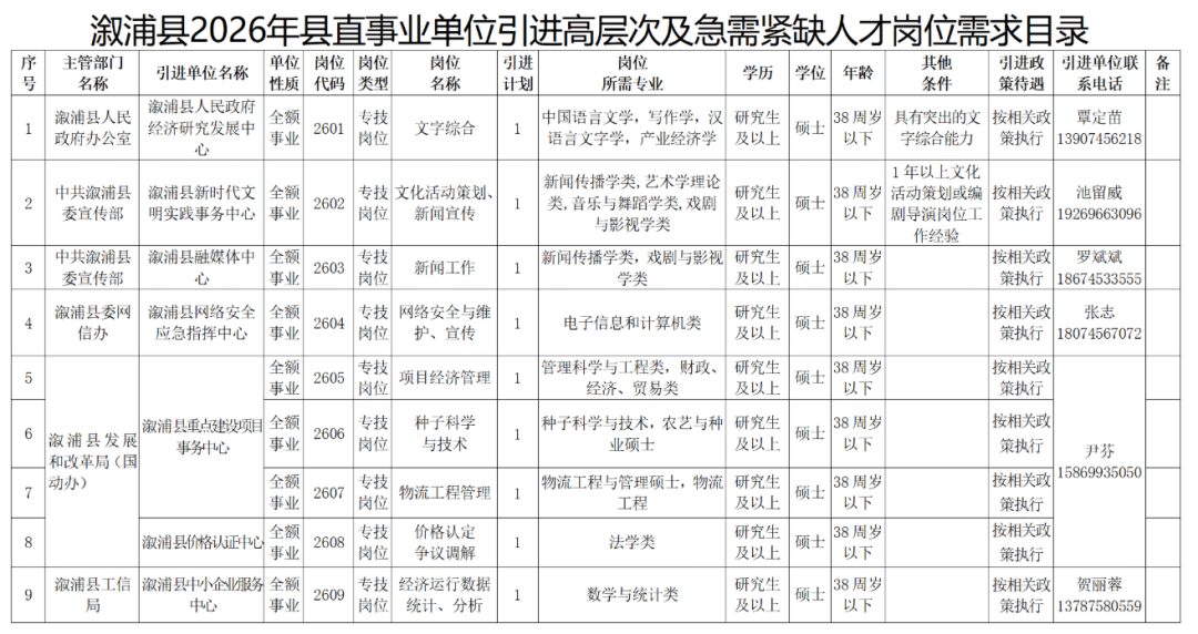 怀化溆浦县2026年县直事业单位引进高层次及急需紧缺人才公告