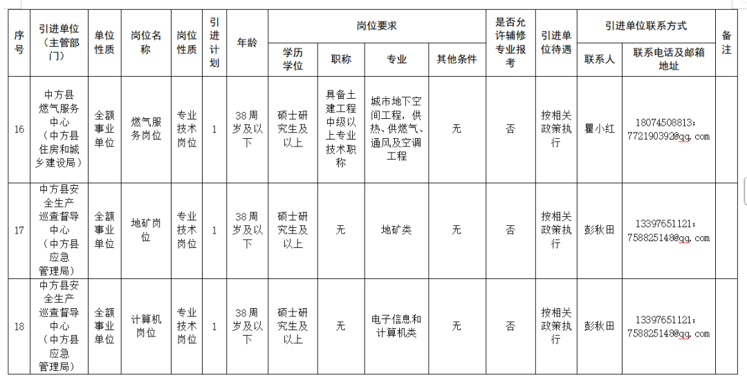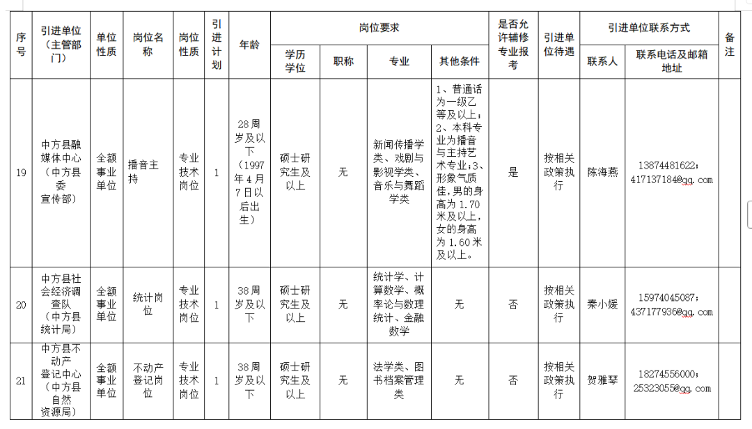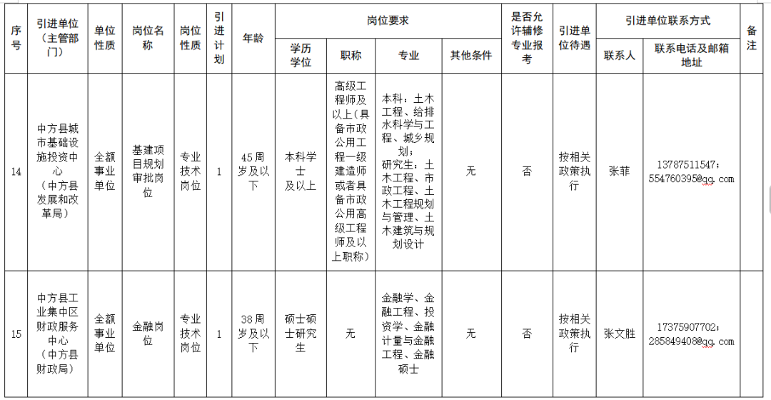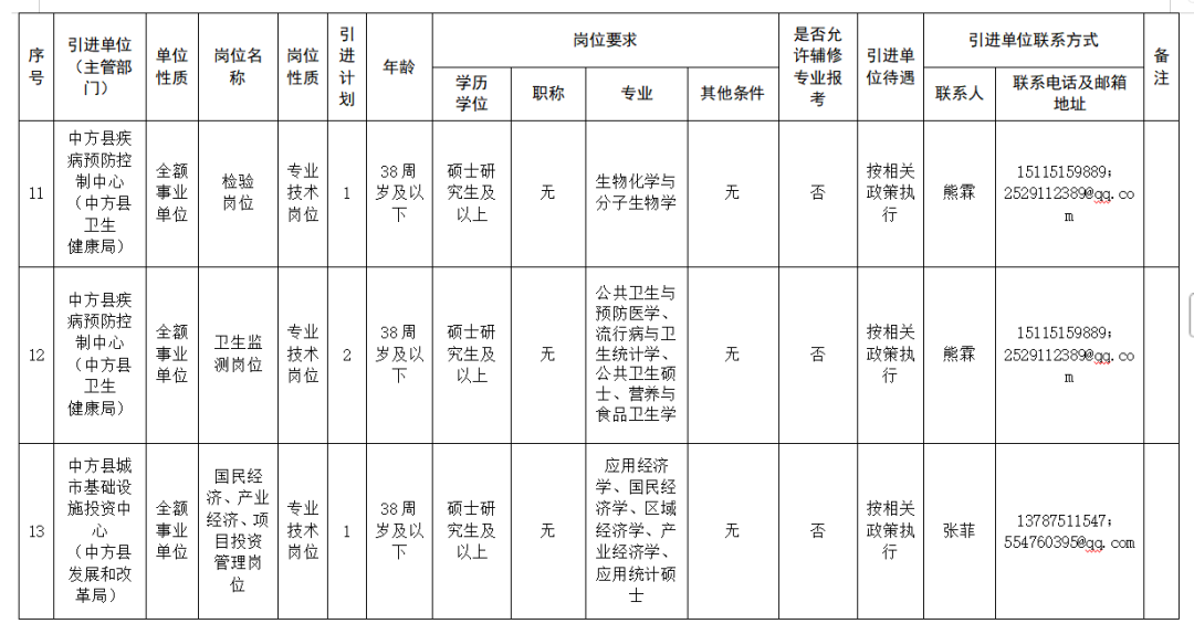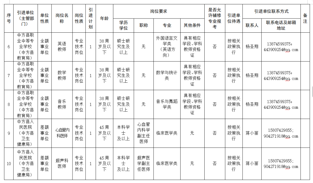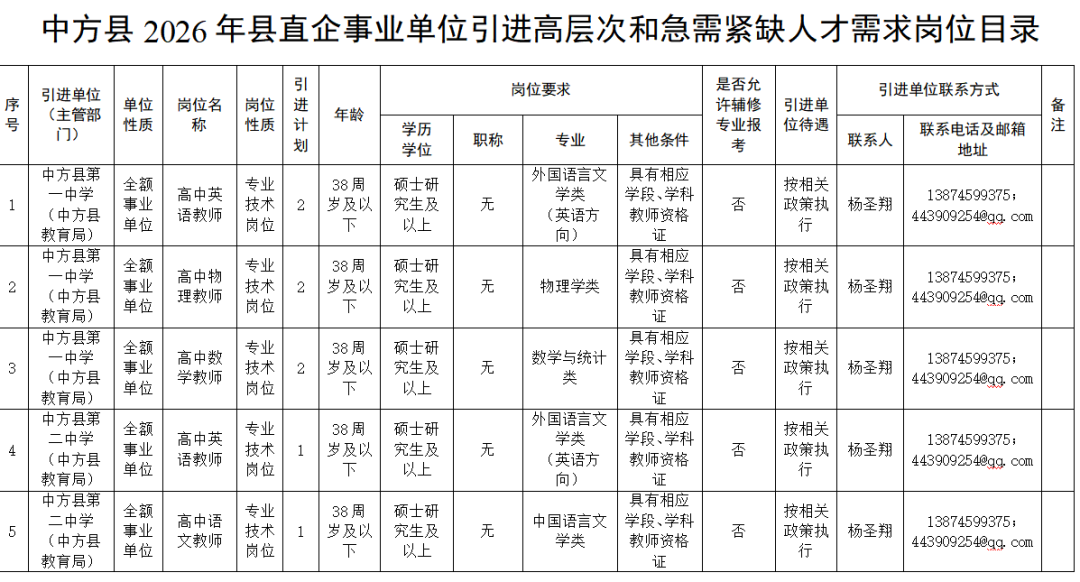 怀化市中方县县直企事业单位引进高层次和急需紧缺人才公告
