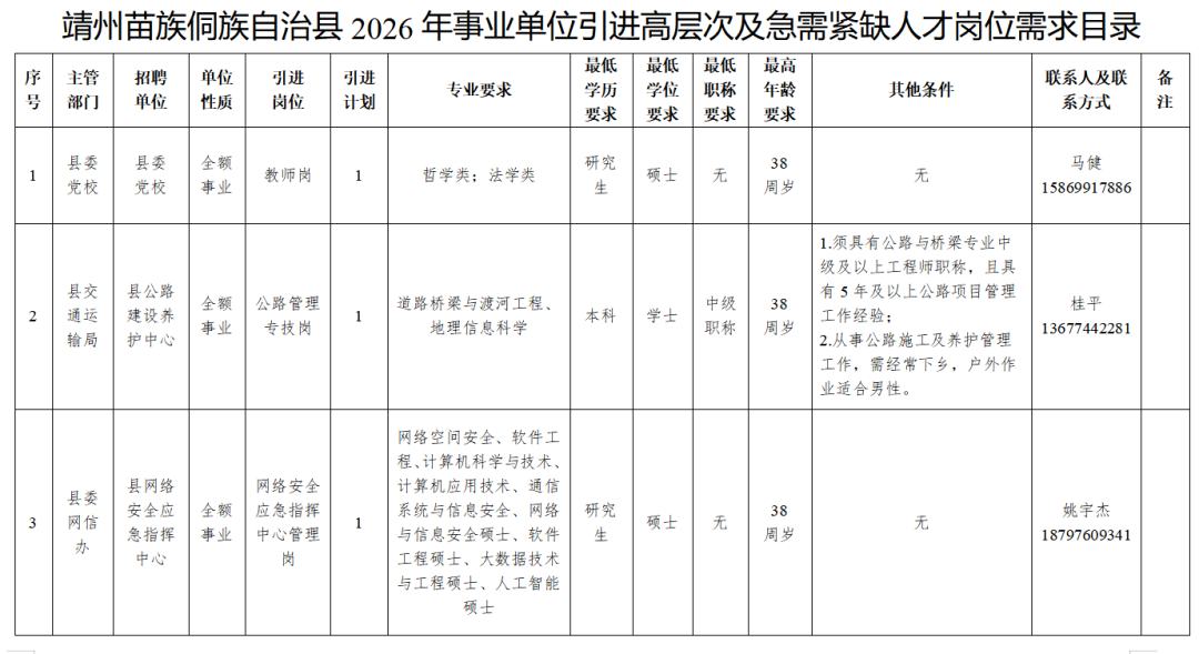 怀化靖州苗族侗族自治县2026年事业单位引进高层次及急需紧缺人才公告