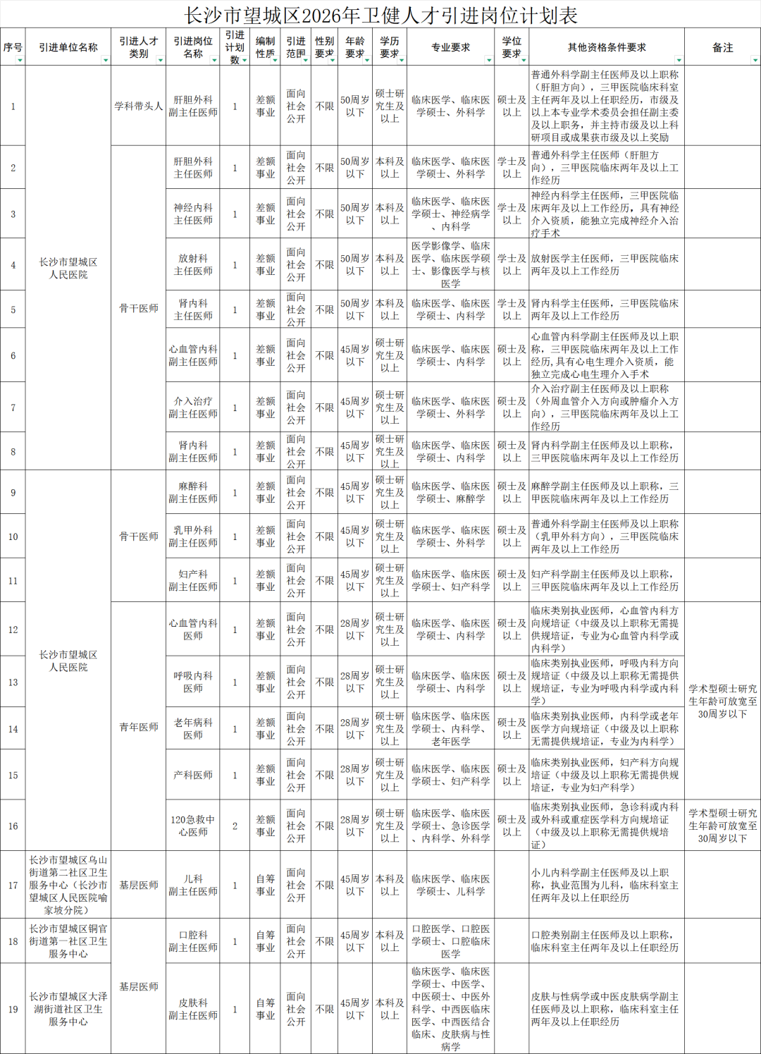 长沙市望城区2026年卫健人才公开引进公告
