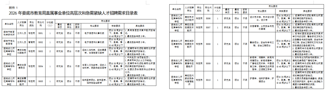 娄底市教育局直属事业单位高层次和急需紧缺人才招聘公告