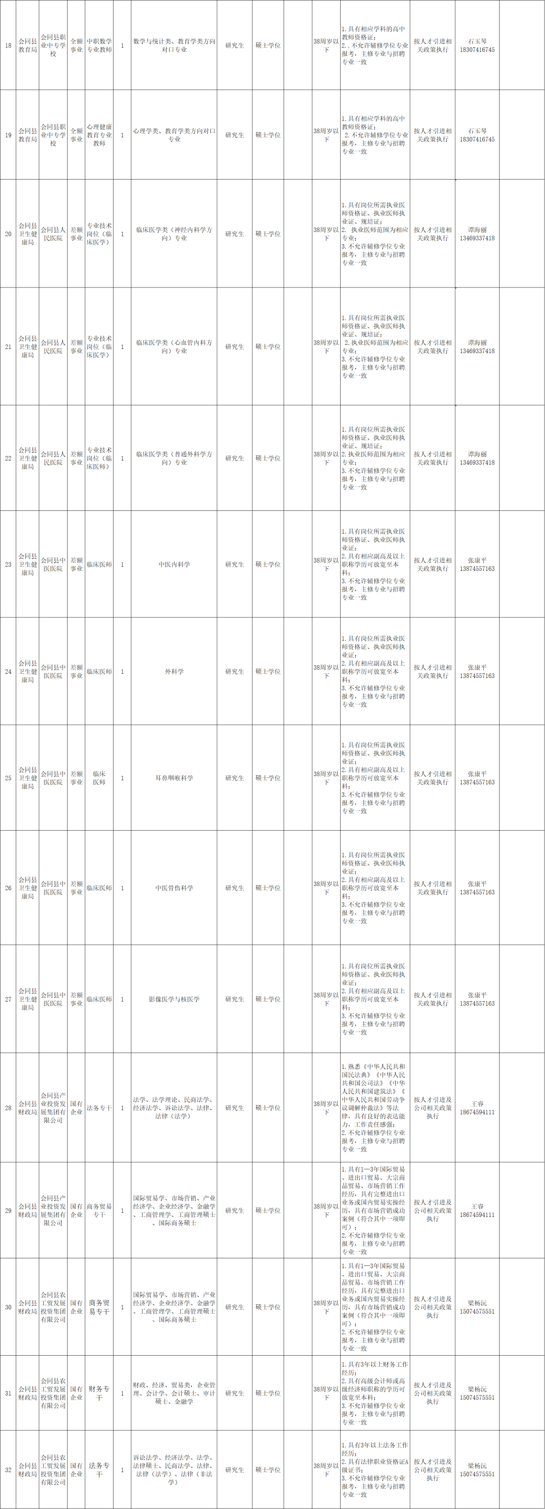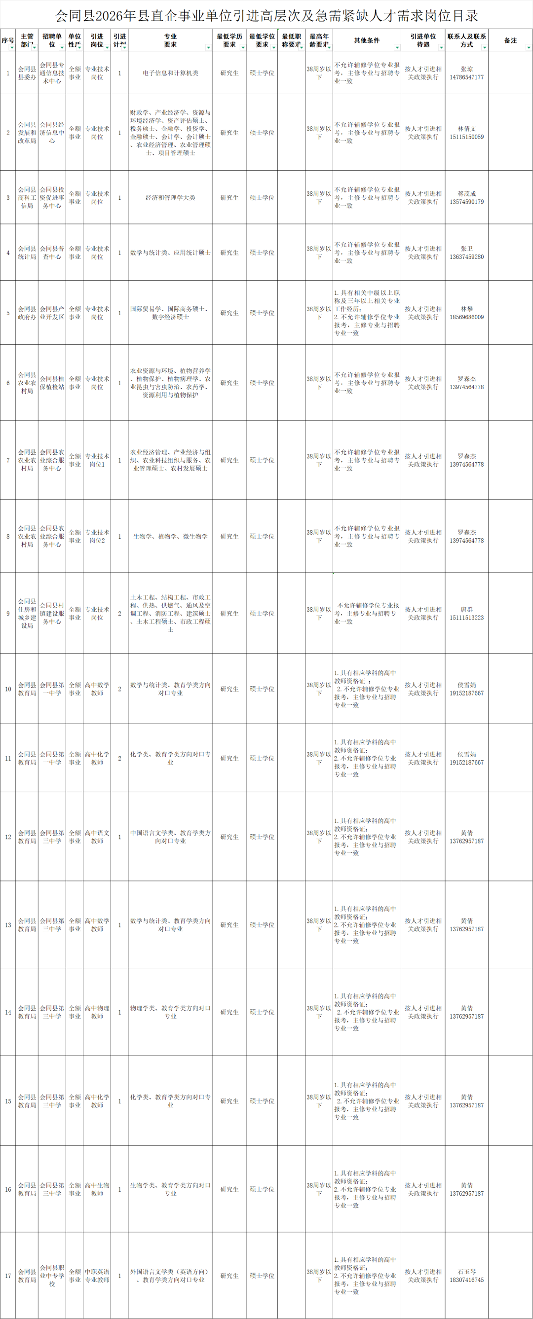 怀化市会同县县直企事业单位引进高层次及急需紧缺人才公告
