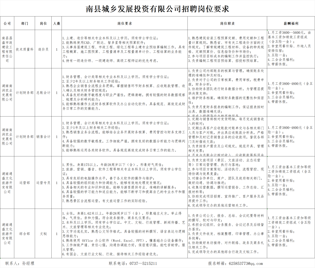 报名地点:南县城乡发展投资有限公司203室