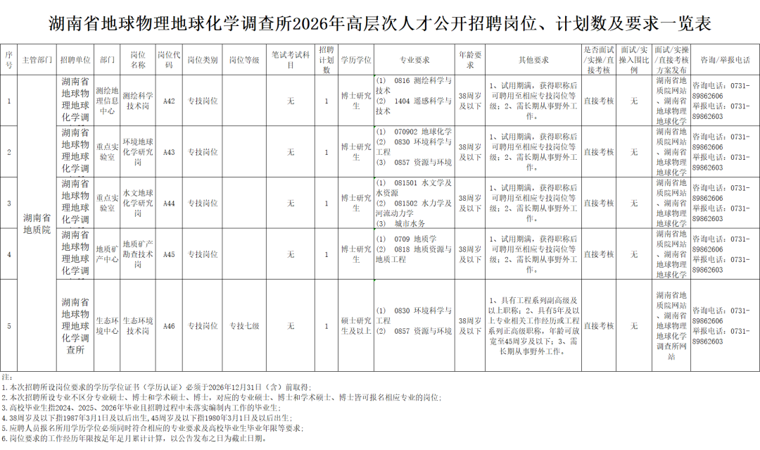 湖南省地球物理地球化学调查所2026年高层次人才公开招聘公告