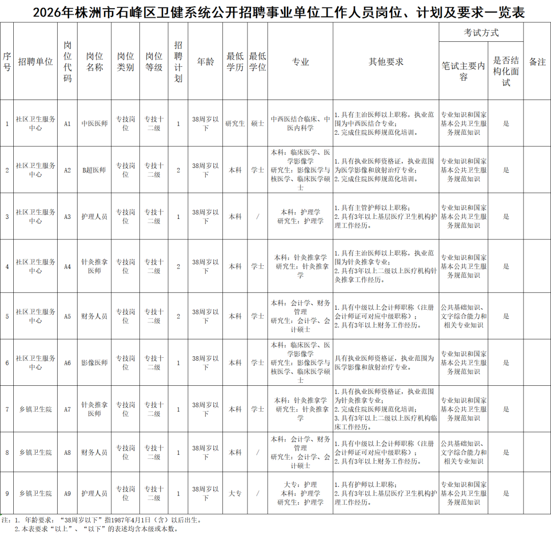 株洲市石峰区卫健系统公开招聘事业单位工作人员公告