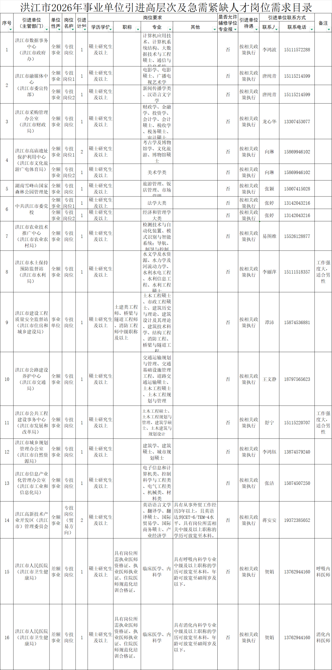 怀化洪江市事业单位引进高层次及急需紧缺人才公告