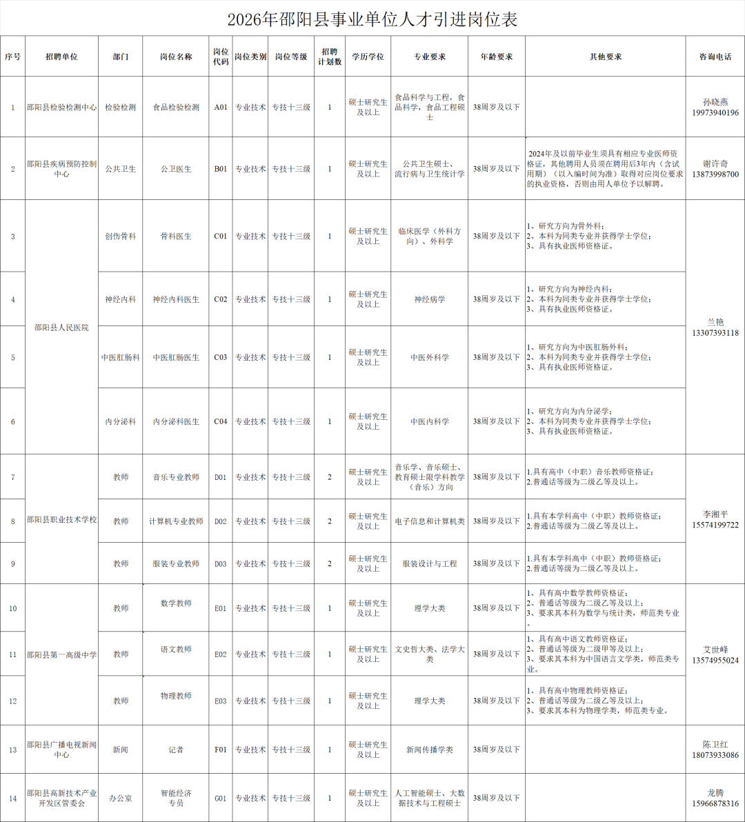 邵阳市邵阳县事业单位人才引进公告