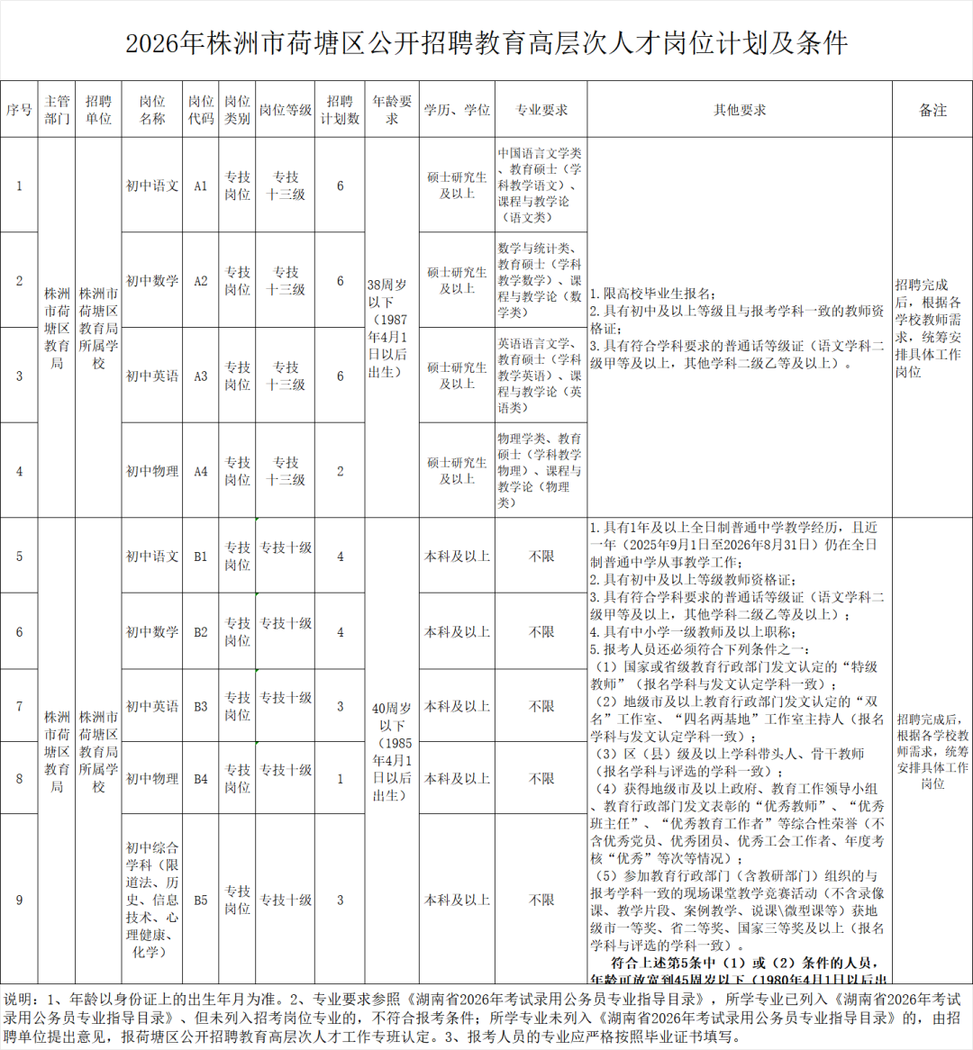 株洲市荷塘区公开招聘教育高层次人才公告