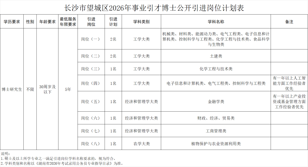 长沙市望城区2026年事业引才博士公开引进公告