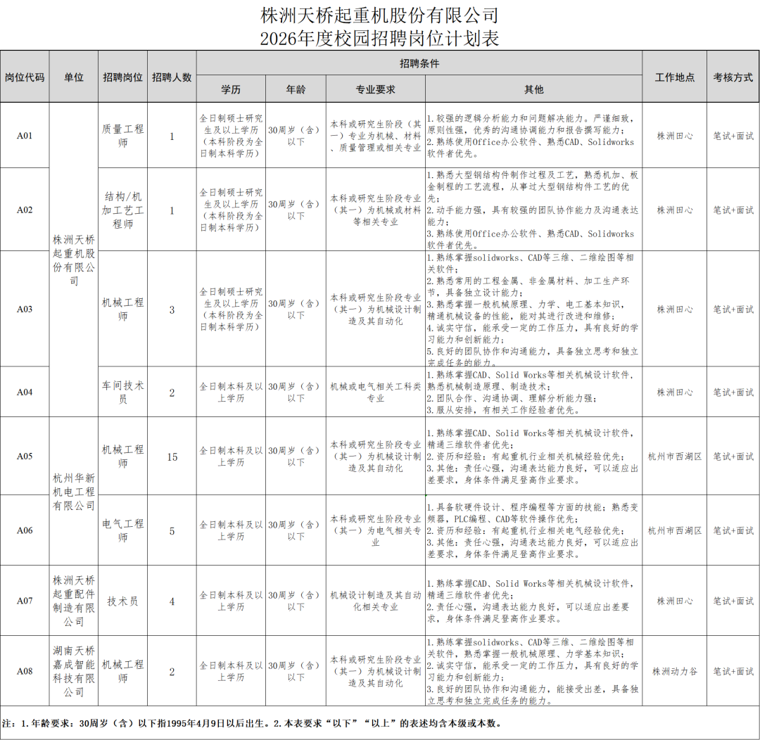 株洲天桥起重机股份有限公司招聘公告