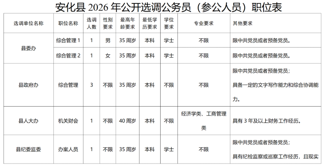 益阳安化县公开选调公务员(参公人员)公告