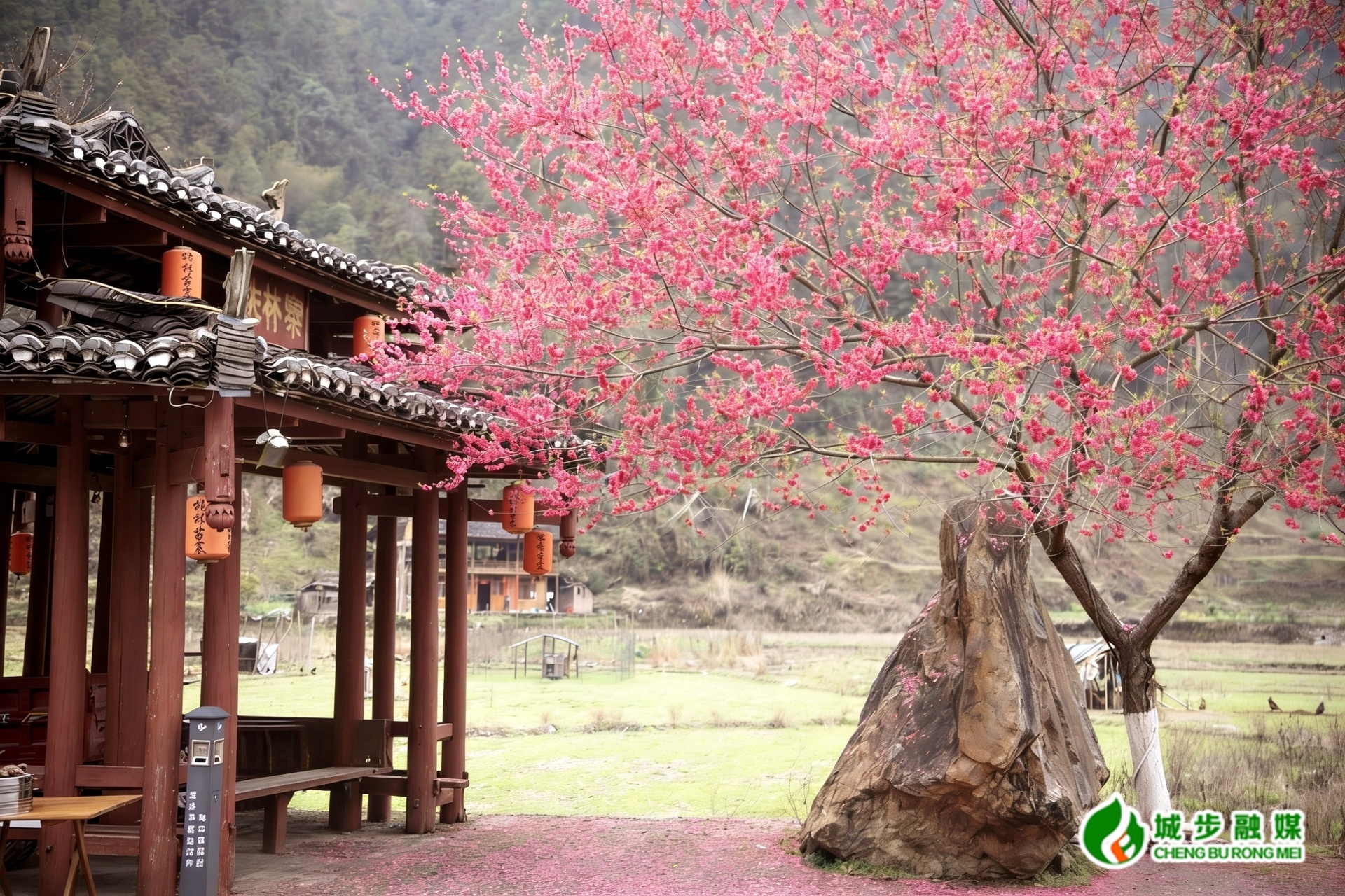 走进桃林村,只见河水两岸桃树连绵一片,如云霞铺展。微风拂过,花瓣簌簌飘落,如一场无声的春雨,纷纷扬扬飘向河面,偶有几瓣落在岸边青石上,铺成薄薄一层花毯。走近细看桃花,花瓣自深粉渐变为浅粉,层层舒展,嫩黄的花蕊细密如丝,缀着晨露,晶莹剔透。枝头花苞裹着露水,新叶初绽嫩绿如染,与绯红花影相映成趣。桃花树下,游人三五成群,或驻足拍照,或花下小憩,人、花、水、风在此刻浑然相融,镌刻出了一幅悠闲自在的春日画卷。