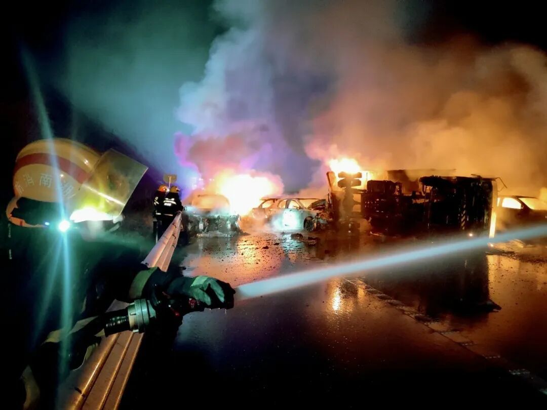 导致该路段共有12台车辆起火