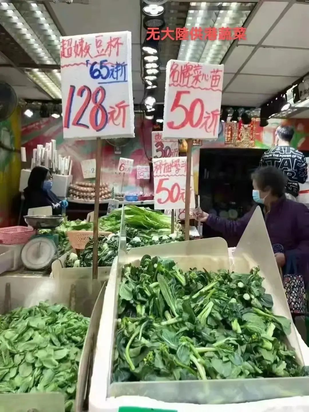 香港的经济,不但需要大陆的游客,也需要大陆的货物。因为疫情的影响,来自大陆的新鲜蔬菜也少了,价格也出现了暴涨。