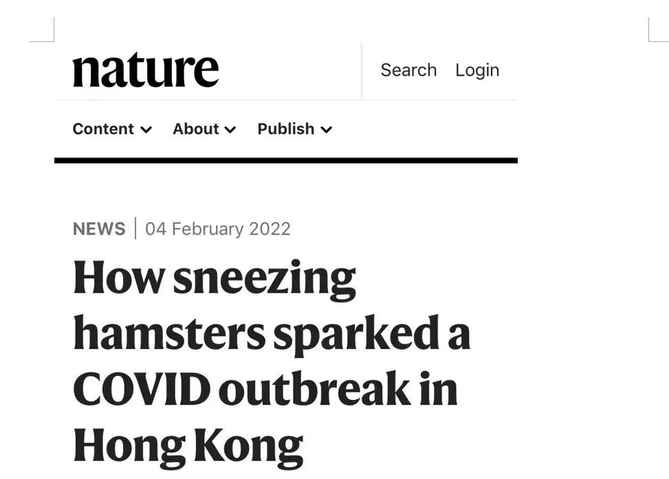 1月28日,一份尚未经过同行审评的研究报告,详细讲述了香港与仓鼠相关的感染。在2月4日,《自然》杂志也对此进行了报道。
